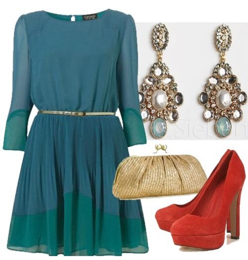 Look festa super elegante e fluido, com acessórios poderosos em tons dourados. Pra quebrar a combinação toda e sair do óbvio, um calçado simples e de cor vibrante.